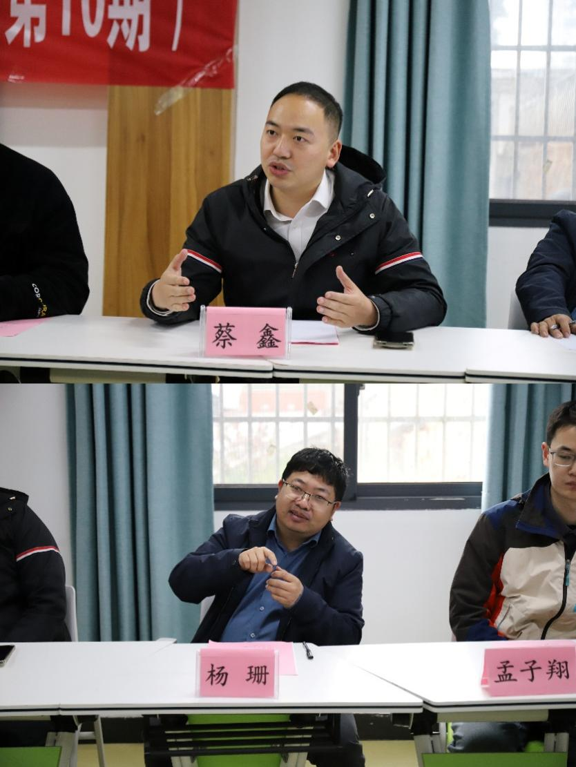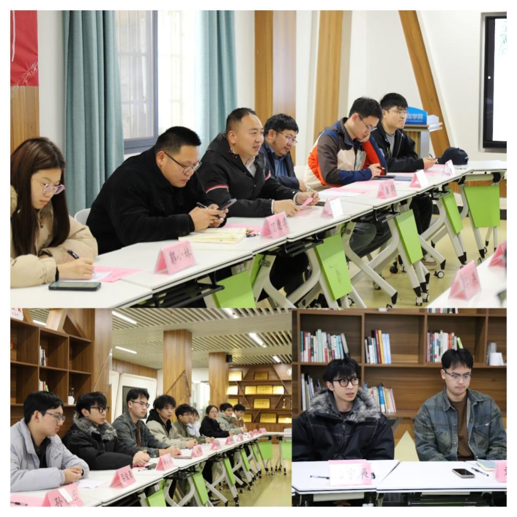 指导老师蔡鑫、杨珊,研究生代表及本科毕业生代表齐聚一堂,在轻松温馨的氛围中共话学业、共促成长。活动由院团委书记丁德孝主持。
