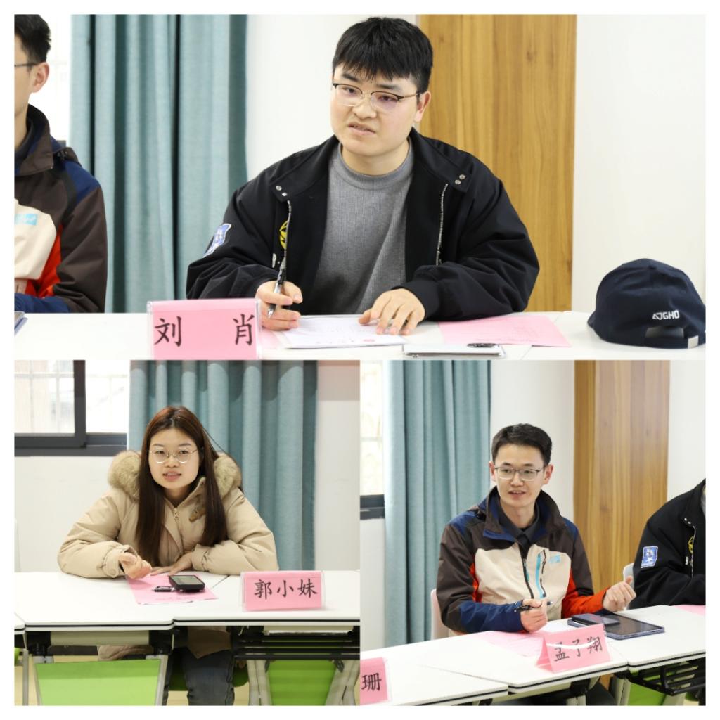 2025级采矿工程专业研究生刘肖、安全科学与工程专业研究生孟子翔、郭小妹依次分享备考经验与心得。三位研究生代表结合自身实战经历,从面试技巧、笔试准备、临场应对等方面给出实用建议,强调保持平稳心态、稳定发挥水平是升学考核成功的关键。