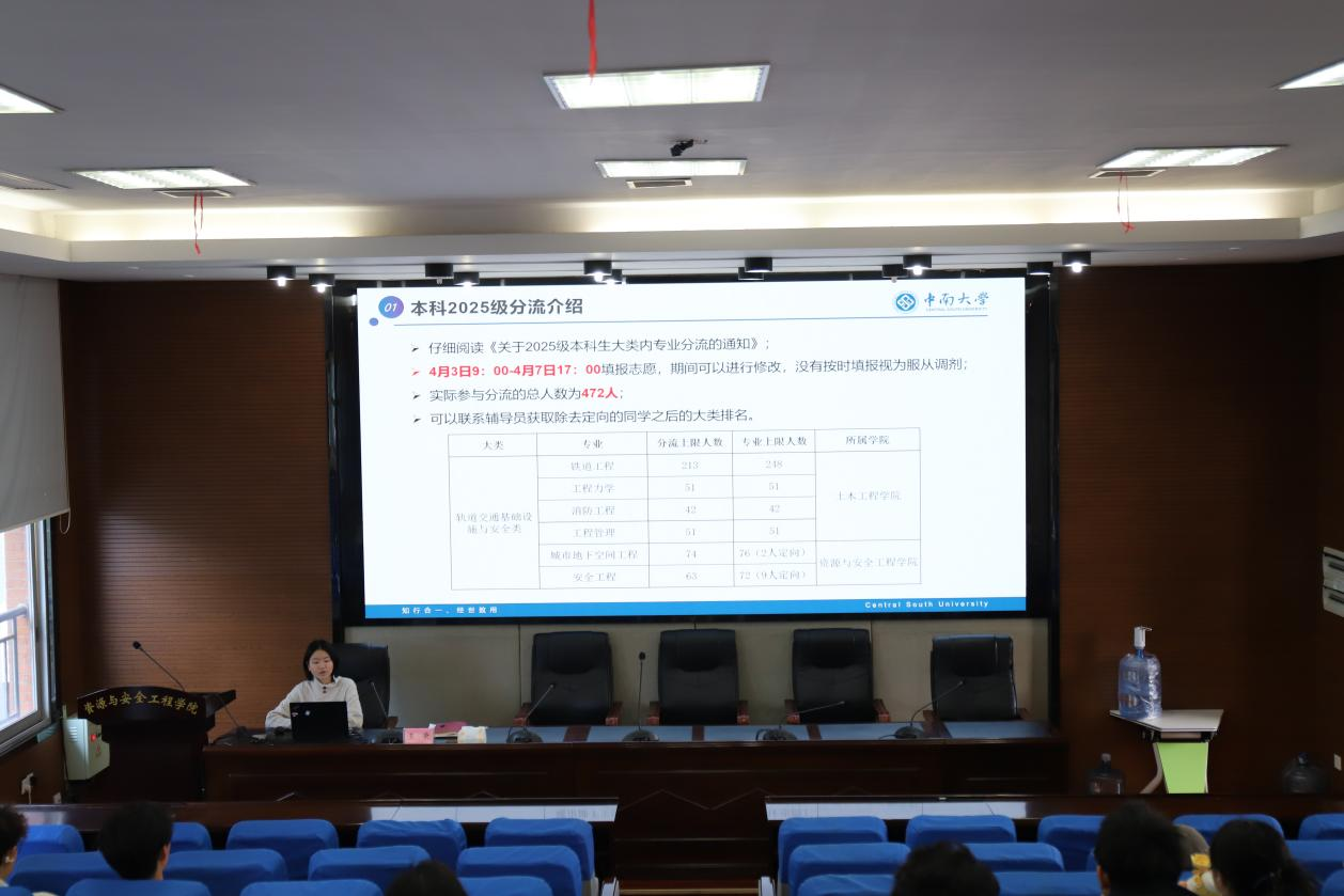 随后,黄佳星老师作轨道交通基础设施与安全类2025级专业分流专题汇报,并设置提问互动环节,精准回应学生的分流疑问。黄老师聚焦分流关键工作,明确了志愿填报的时间节点、填报规则等核心信息,解读了大类内各专业的分流计划、所属体育博彩网站