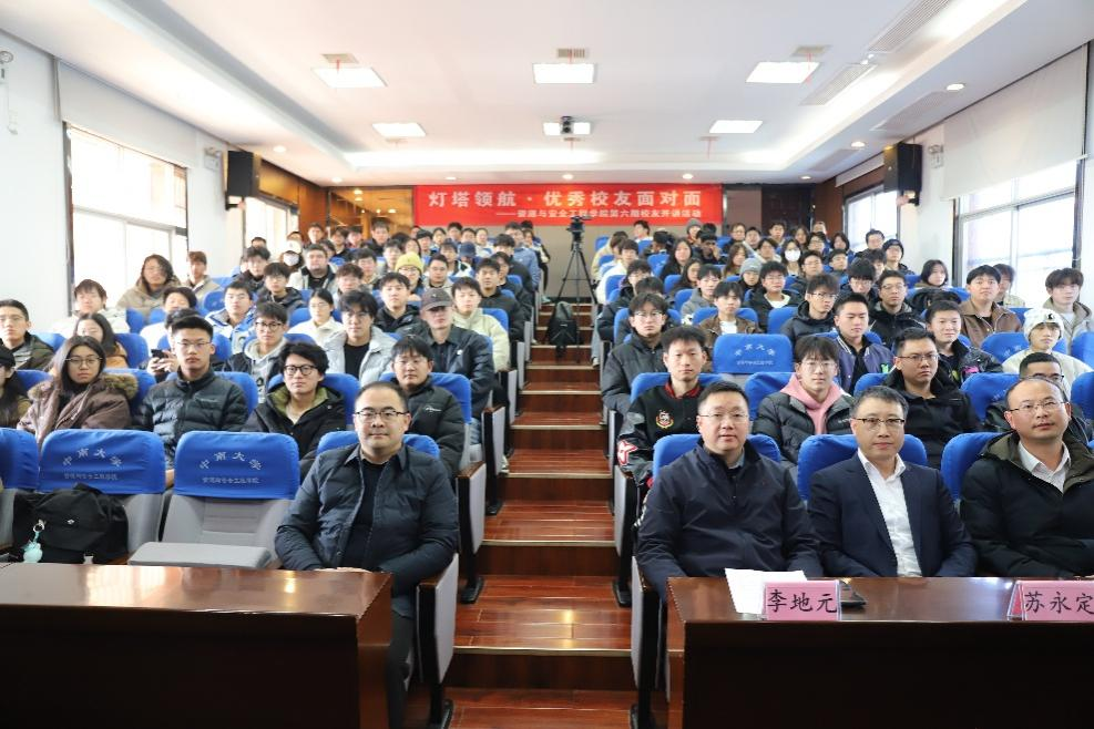 2001届优秀校友、塞尔维亚紫金矿业有限公司总经理苏永定受邀主讲,岳龙副书记、李地元副院长热情接待了苏永定校友,并与百余名师生共同参加活动。